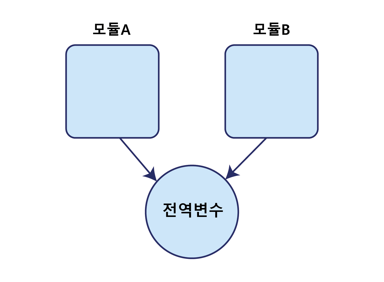 - 여러개의 모듈이 하나의 공통 데이터 영역을 사용하는 경우